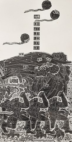 雄狮之醒——记中国抗战胜利日(黑白木刻) 戴政生