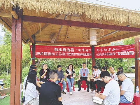 近日,彭水苗族土家族自治县政协组织绍庆片区委员工作室委员和县农业农村委、县规划自然资源局、县文化旅游委、绍庆街道、阿依河社区、村集体经济有关负责人与村民代表围坐一堂,围绕“激活村集体经济动能,赋能乡村振兴”主题,开展“渝事好商量·彭事协商办”协商活动。 冉洵 摄